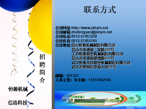 聯(lián)系人:陳先生 電話:0512-36914219 傳真:0512-57455745 郵箱:chenliping@jshym.net 昆山市張浦鎮(zhèn)建德路666號(hào)